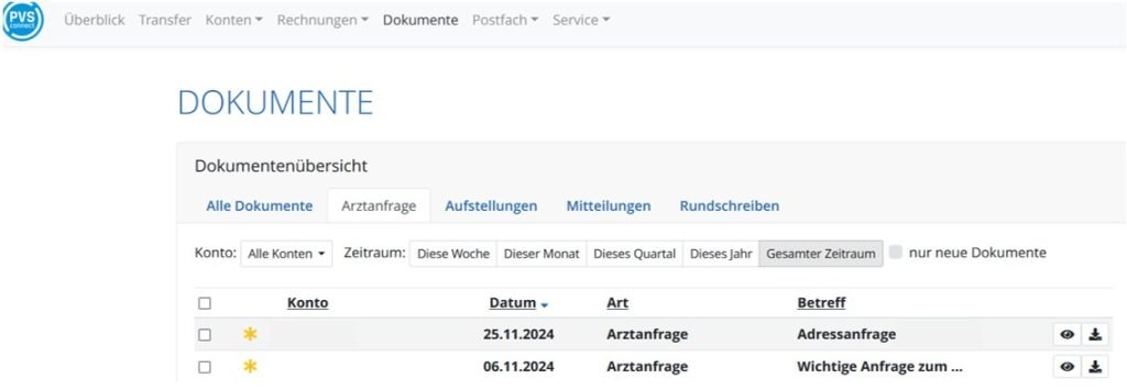 Unter dem Reiter „Dokumente“ finden Sie unter „Arztanfragen“ unsere Anfragen an Sie.